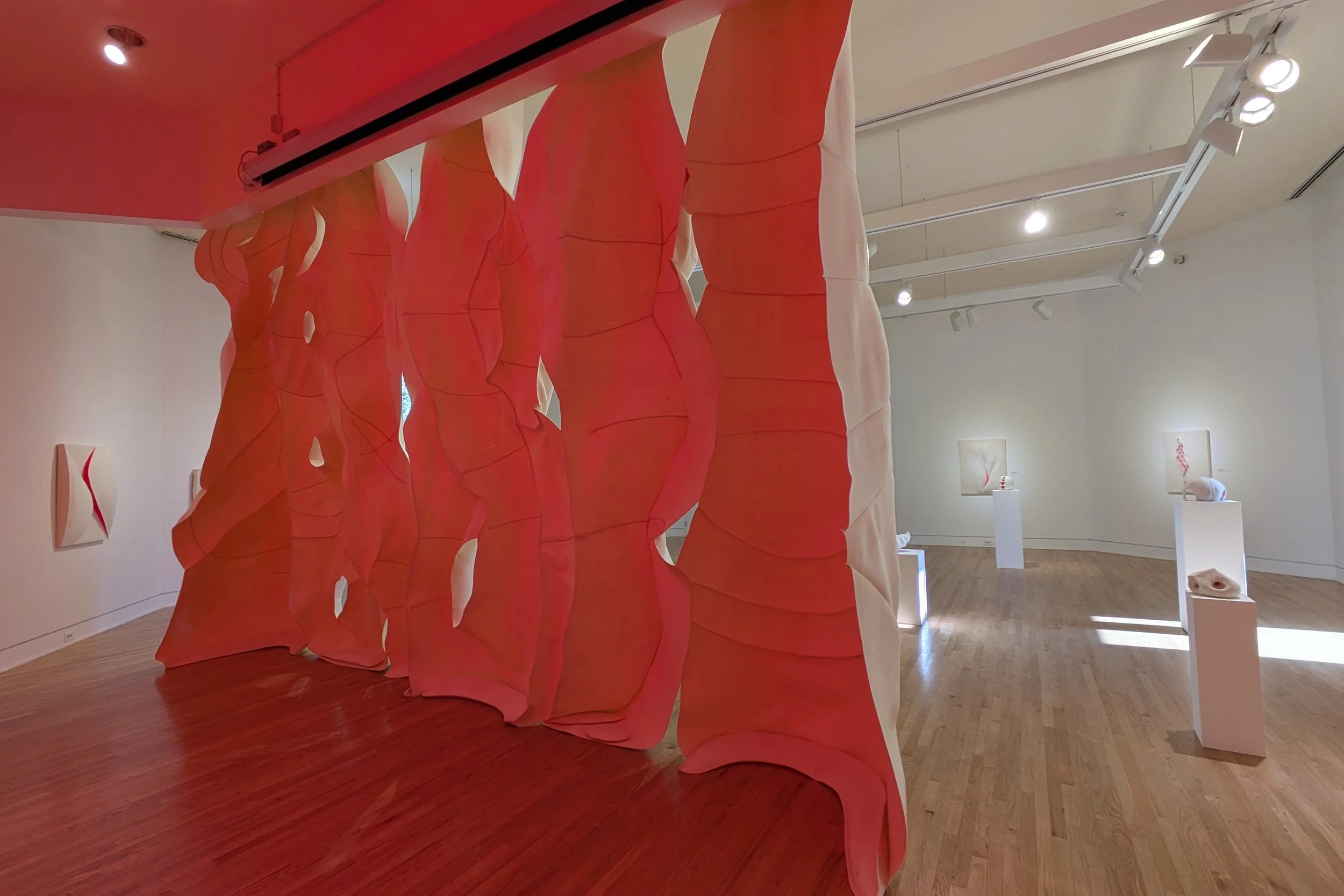 In the Glow Möbiul Voluptuary Vessel Illumbria Tensilary Vigilary Cleave Bowery Vee Askew Growth Concatenary Cicatrix Stitchery Harlequin Ripple Ovoid Installation Views, Triton Museum of Art, Santa Clara, California