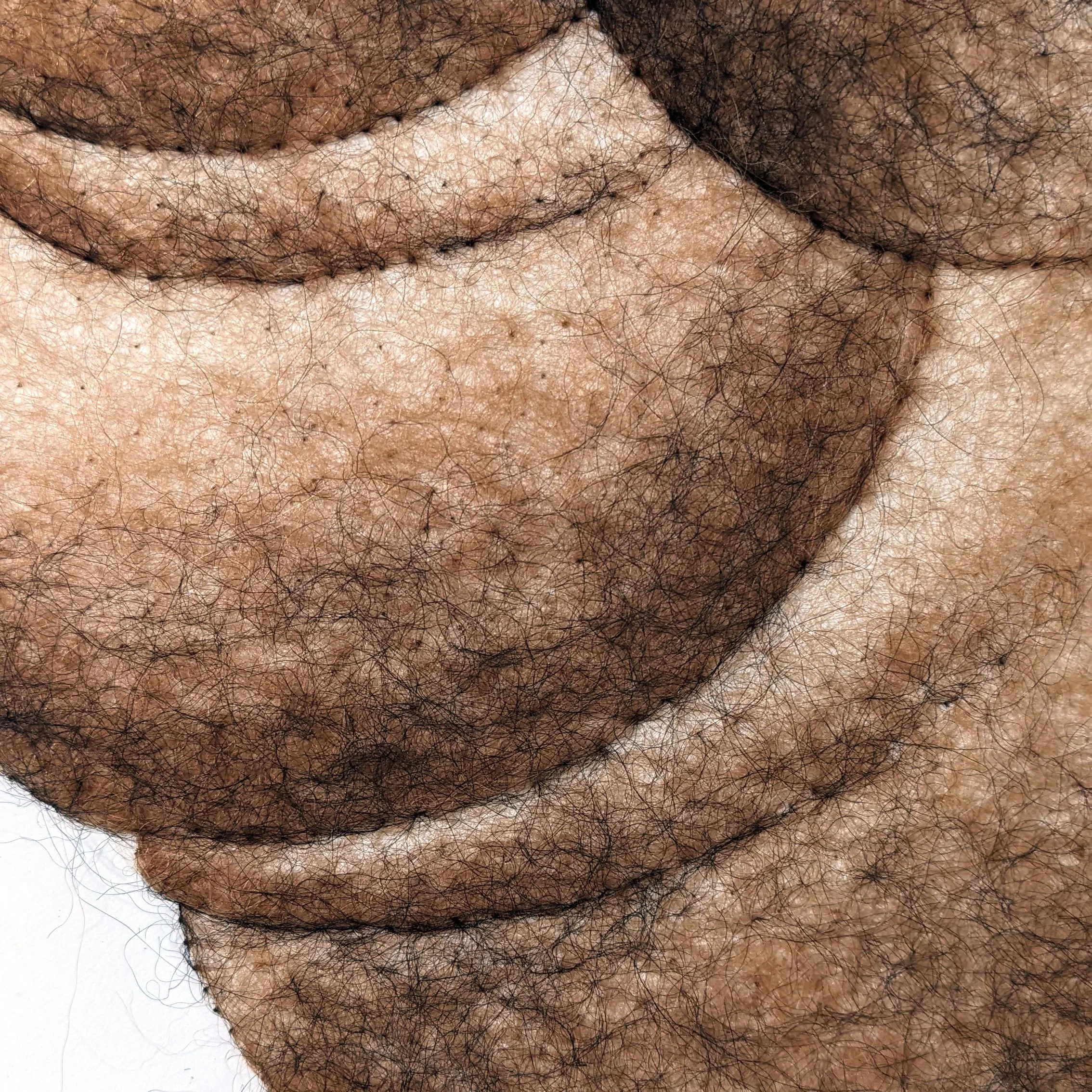 The open-endedness of vaguely recognizable forms encourages engagement through curiosity: the viewer’s attempt to categorize the unfamiliar, to draw comparisons to known objects, and to understand their significance. Closer examination of the drawings reveals another layer of novelty: from a distance what appear to be ink, charcoal, or pencil marks are actually fibers affixed through the paper.